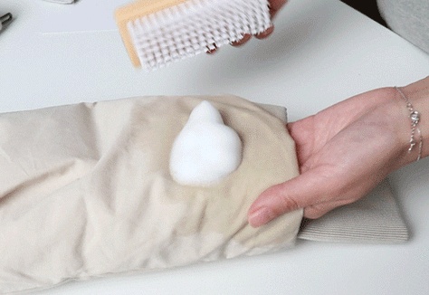用软毛刷蘸取制作好的清洗液,在有污渍的地方轻轻刷洗。动作一定要轻柔,避免损伤布料。如果污渍特别顽固,可以用毛巾轻轻擦拭,切勿用力揉搓。